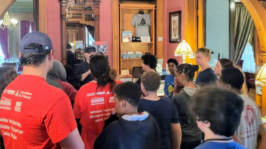 Just a few things to know ahead of time: parking is free and the parking lot entrance is behind the museum off of West Walnut Street. See the map at the bottom of this page for reference. The Howard County Museum is located inside the Seiberling Mansion. The public entrance is the front door of the mansion but there is an access ramp by the rear entrance for those needing assistance. There is no interior elevator, but a virtual tour video of the second and third floors is available on the first floor. Please advise that there are restrooms on the first and second floor inside the mansion, but they are not wheelchair accessible. Visitors are free to enjoy the museum and mansion at their own pace. Bring your smartphone or similar device for access to special exhibit QR code features. Visitors are greeted by HCHS volunteer hosts who can orient you and answer questions.